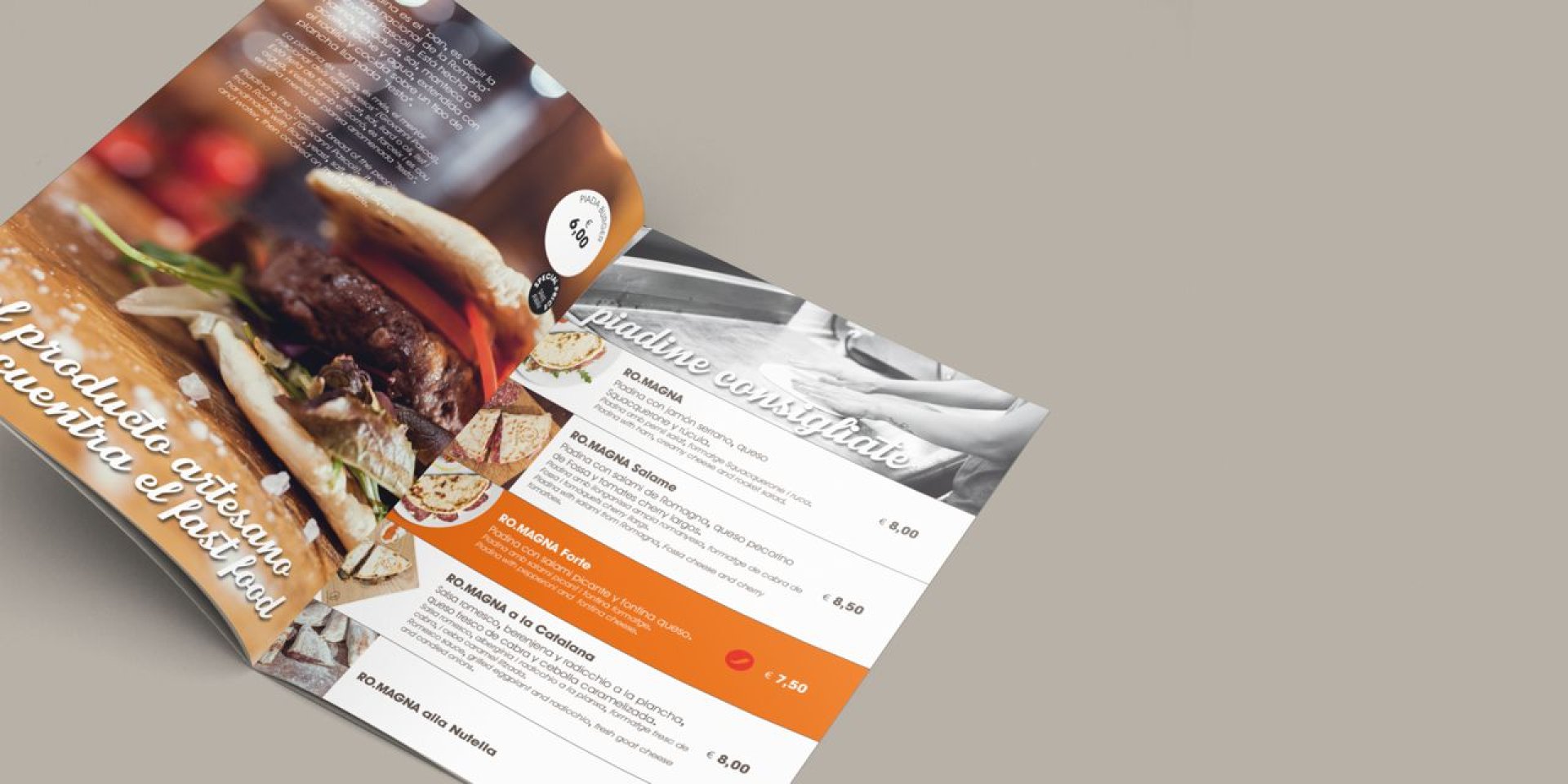 Per Ro.magna, marchio dedicato alla ristorazione e alla cucina tradizionale romagnola, un'immagine coordinata minimale e moderna è fondamentale per comunicare efficacemente i valori e l'identità del marchio nel contesto contemporaneo. La piadina romagnola, una specialità del territorio, rappresenta il fulcro della proposta gastronomica di Ro.magna, richiedendo un'immagine coerente e accattivante che ne valorizzi l'autenticità e la tradizione.