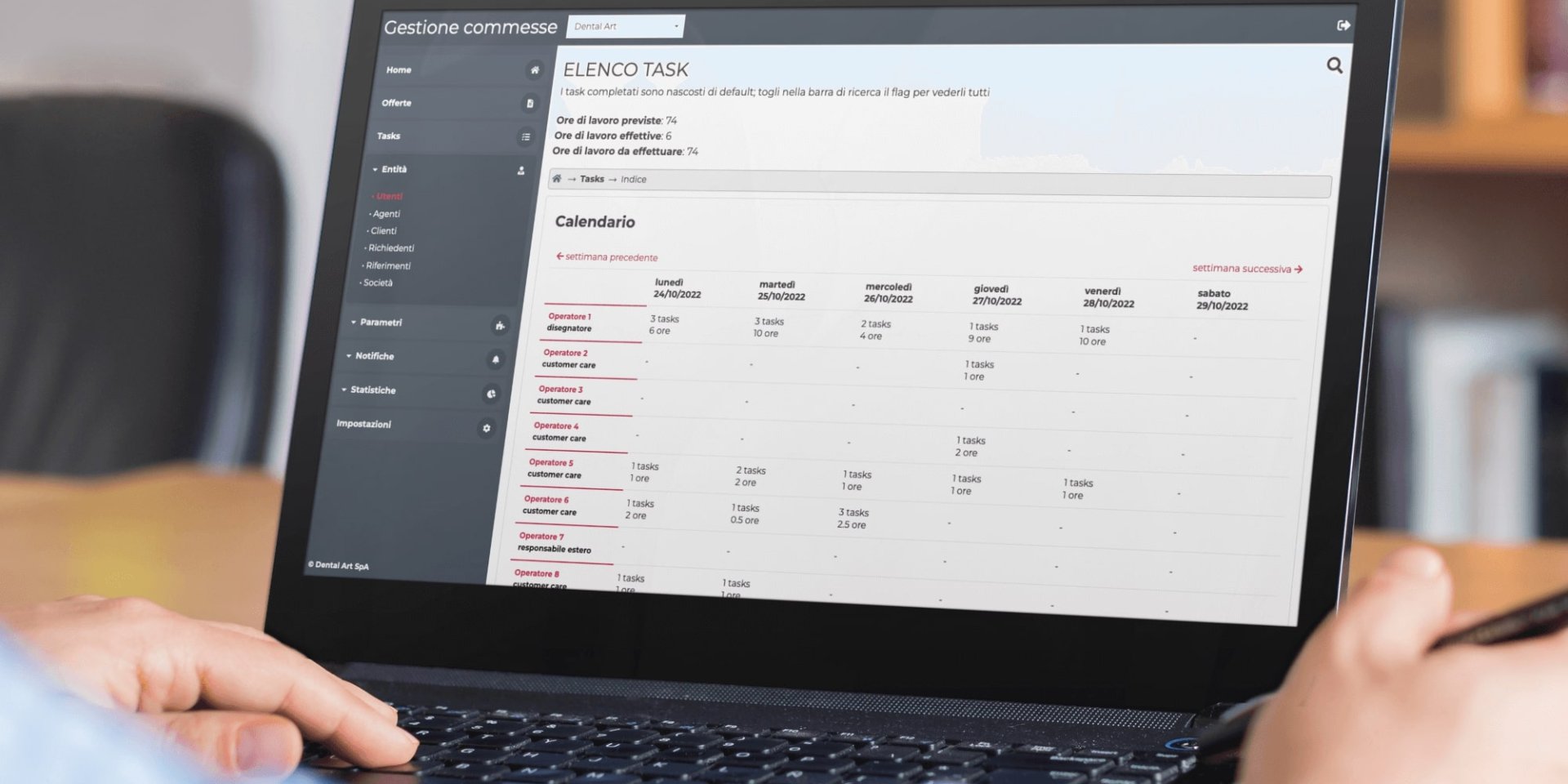 Attraverso il pannello web dedicato, il personale di Dental Art può gestire efficacemente le risorse interne, assegnare task e calendarizzare le attività per ogni membro del team. La possibilità di monitorare lo stato di avanzamento dei progetti in tempo reale consente un controllo più accurato e una gestione più efficiente delle scadenze e delle risorse.